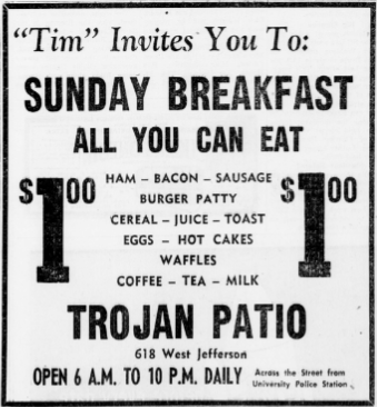 The Trojan Patio offered a pretty good breakfast deal in 1960.