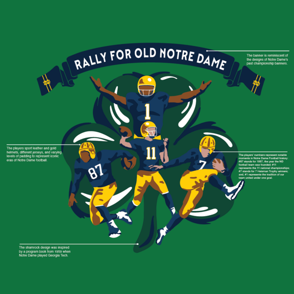• Have you ever heard of The Shirt? Notre Dame sells a specifically designed T-shirt for every football season. This is Shirt 34, which will be worn tomorrow by some fans (under layers of clothing).