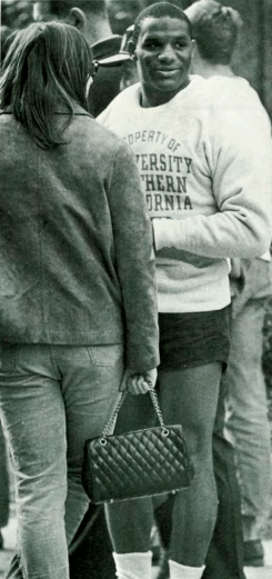 • Mike Garrett returned to USC the spring semester following his rookie season with the Kansas City Chiefs. Looks like he is wearing shoulder pads.
