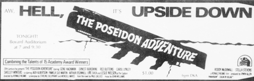 The movies were presented by Delta Kappa Alpha, USC’s honorary cinema fraternity. Among other selections were Soylent Green, Westworld, The Day of the Jackal, The Godfather, Last Tango in Paris and A Clockwork Orange.