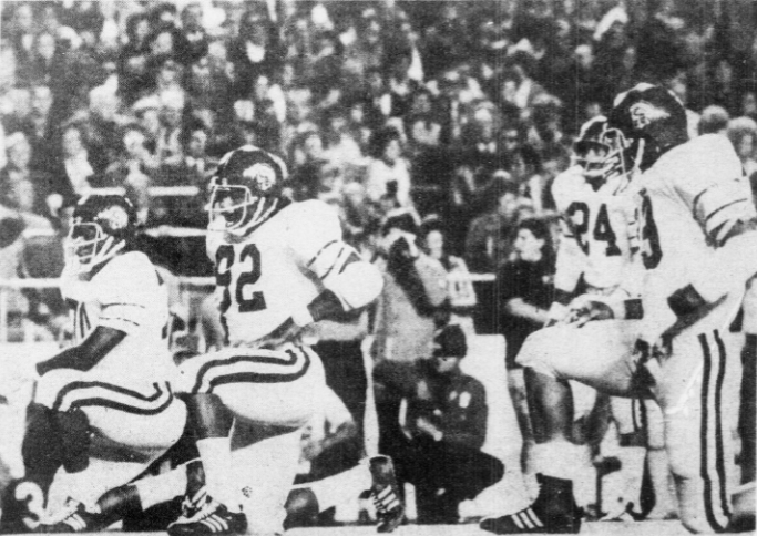 • Now this is a defensive line: Art Riley (left), Otha Bradley (92) and Gary Jeter (right) in 1974. They held Tony Dorsett to 59 yards in 15 carries in a 16-7 victory over No. 18-ranked Pitt.