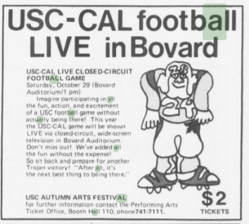 • Some USC road games used to be shown in Bovard Auditorium, like this game against Cal in 1977.