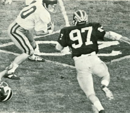 Uderrated Bob Chandler exhibits ‘the fake move’ which all the great runners know, the ‘escape-artists’ such as SC’s Anthony Davis and Reggie Bush