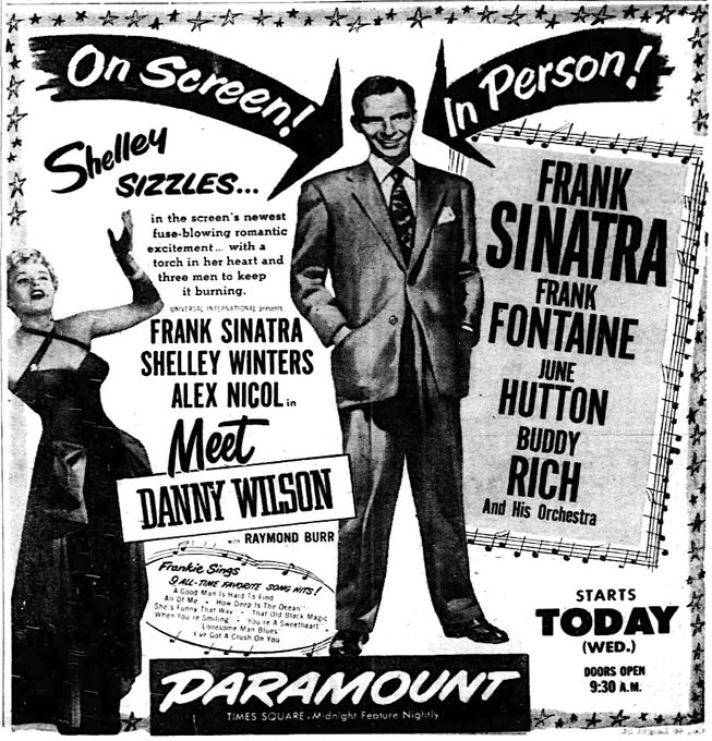 • Can you imagine going to see a movie in 1952 in Times Square starring Frank Sinatra and besides the movie, you actually get to see Sinatra sing in person as part of a show that included Buddy Rich and his orchestra?