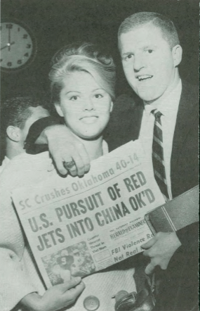 “I wore my blue blazer that said SC on it with my cardinal and gold tie. I walked in and there was a bonfire in the middle of the floor. There was a mass of people. It looked like German storm troopers were protecting the band.