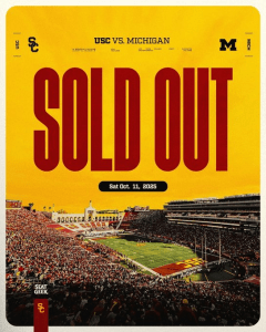 USC announced that the Michigan game is sold out. But you know how USC is, a sell out isn’t actually a sell out. Remember last year when games were sold out and then a lot of tickets were available on SeatGeek.