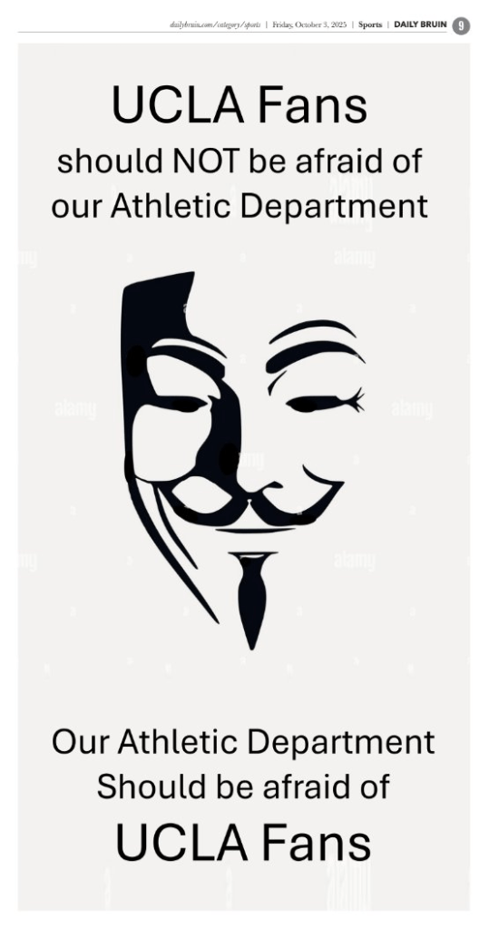 KAM: Affirmative Action Athletic Director hire Dan Guerrero destroyed the UCLA fan base in 2015 when he quadrupled the price of season tickets and tens of thousands of loyal Bruin alumni gave up their season tickets. Now they have to offer free tickets to high school students or the place would be empty!