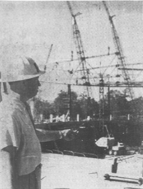 - Engineer Russ Kimble observes construction of the Sports Arena in 1958. One reason the $6 million arena was noteworthy according to Kimble was that there were no obstructions indoors because the roof was constructed “in the shape of a bowl on top of the ground work.”