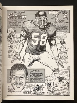 - The 1987 USC-UCLA game program featured an Art Brewster illustration of USC linebackers Marcus Cotton and Bill Stokes.