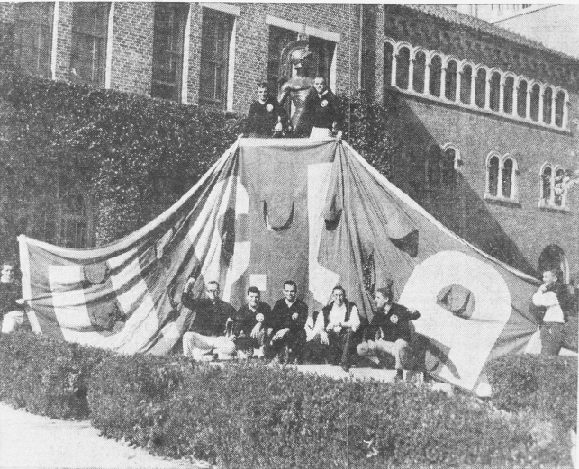 - USC students pose in 1958 after stealing a UCLA banner that would hang atop the Coliseum during home games for the Bruins