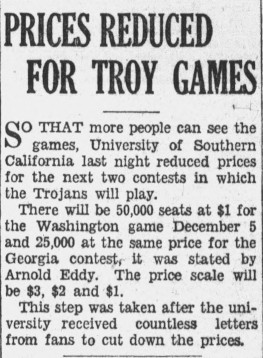 So how did USC respond when the Trojans returned four days later from South Bend? It immediately reduced ticket prices for the next two home games.