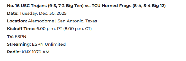 Before USC played TCU in the Alamo Bowl, it announced the game would be broadcast on KNX-1070 AM instead of its regular station (710).