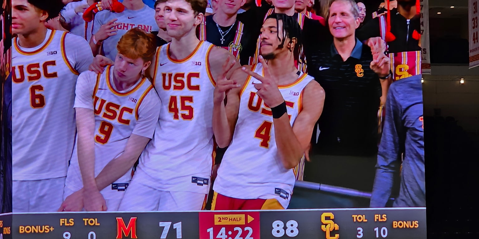 Eric Musselman jumped into the student secton last night to celebrate USC’s victory ove Maryland. You think Sir Lincoln of Riley would ever do that?