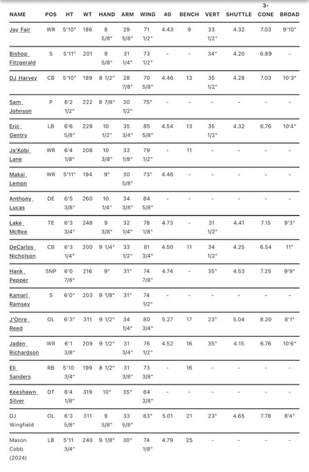- I mentioned some of this yesterday but here are the full Pro Day marks from USC. Look at the bench press. It’s generally unimpressive. But no one will want to talk about it.