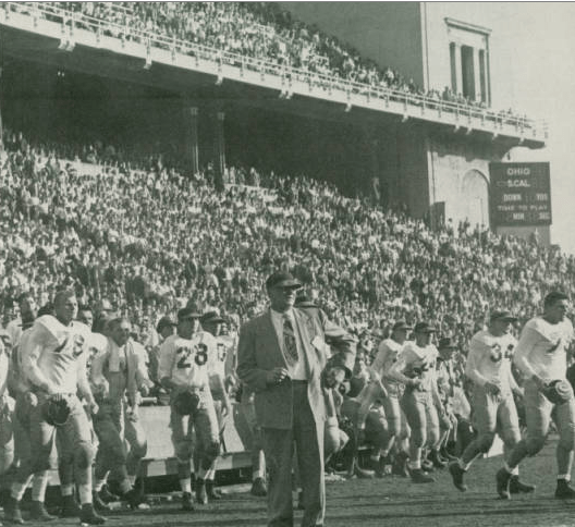 - USC coach Jeff Cravath and the Trojans enjoy the closing moments of a 32-0 victory over Ohio State in Columbus in 1947. Check out the visors the players wore on the sideline.